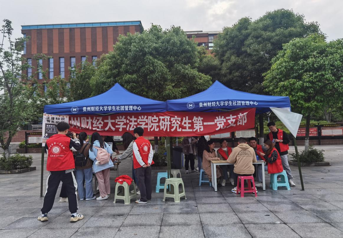 (报道∣邱罗娇,摄影∣周睿琪)为学习贯彻习近平新时代中国特色社会主义思想,将习近平法治思想理论学习和实践锻炼有机结合,5月14日,法学院研究生第一党支部在fh体育平台(中国)集团花溪校区开展了主题为普法 维 权志愿服务活动,联系研究生第一党支部的党委委员、副院长宋昭澜到现场参与指导了此次活动。